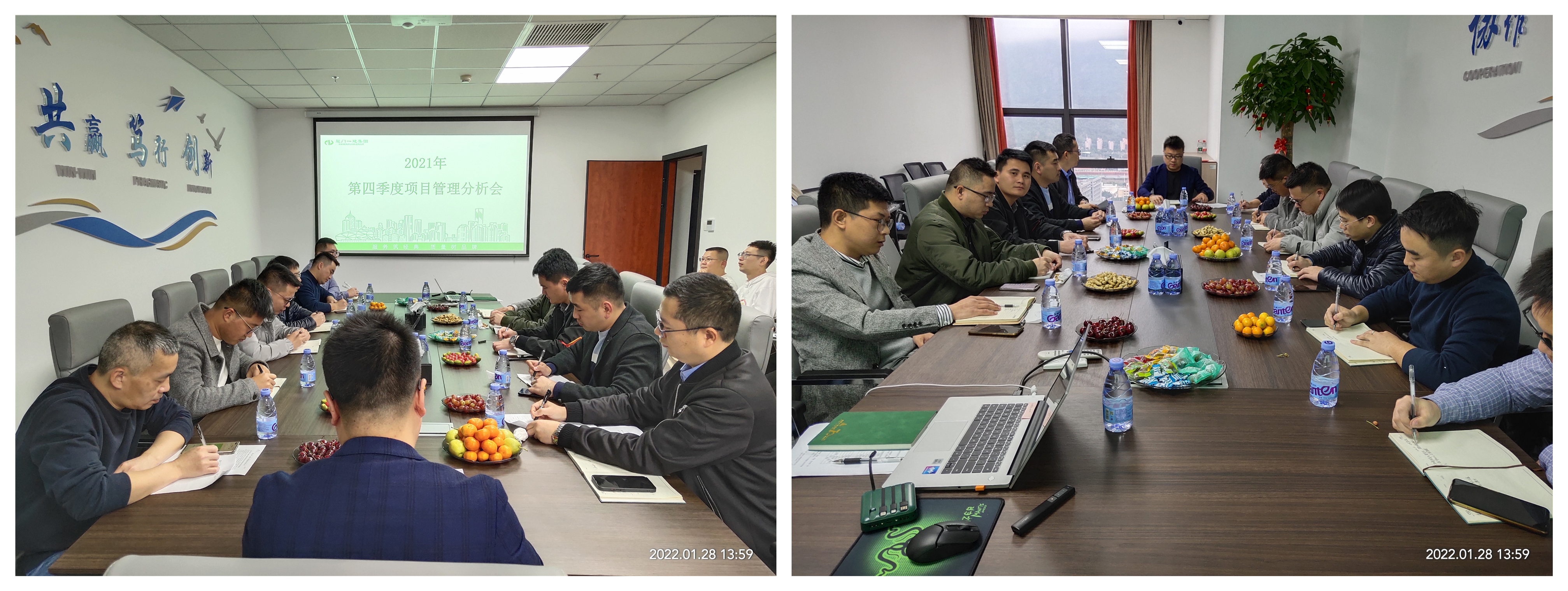 2022年1月28日,集團 “2021年第四季度項目管理分析會”在福州總部召開!集團總經理黃茂文先生、常務副總經理潘德誠先生及集團副總經理王永遠先生攜集團各部門負責人和項目經理參會。會議聚焦2021年第四季度的項目管理工作,針對項目管控中存在的問題進行了總結分析,對完善項目部與公司各部門協同工作機制進行了充分的探討,并對下一季度工作重點進行了部署。