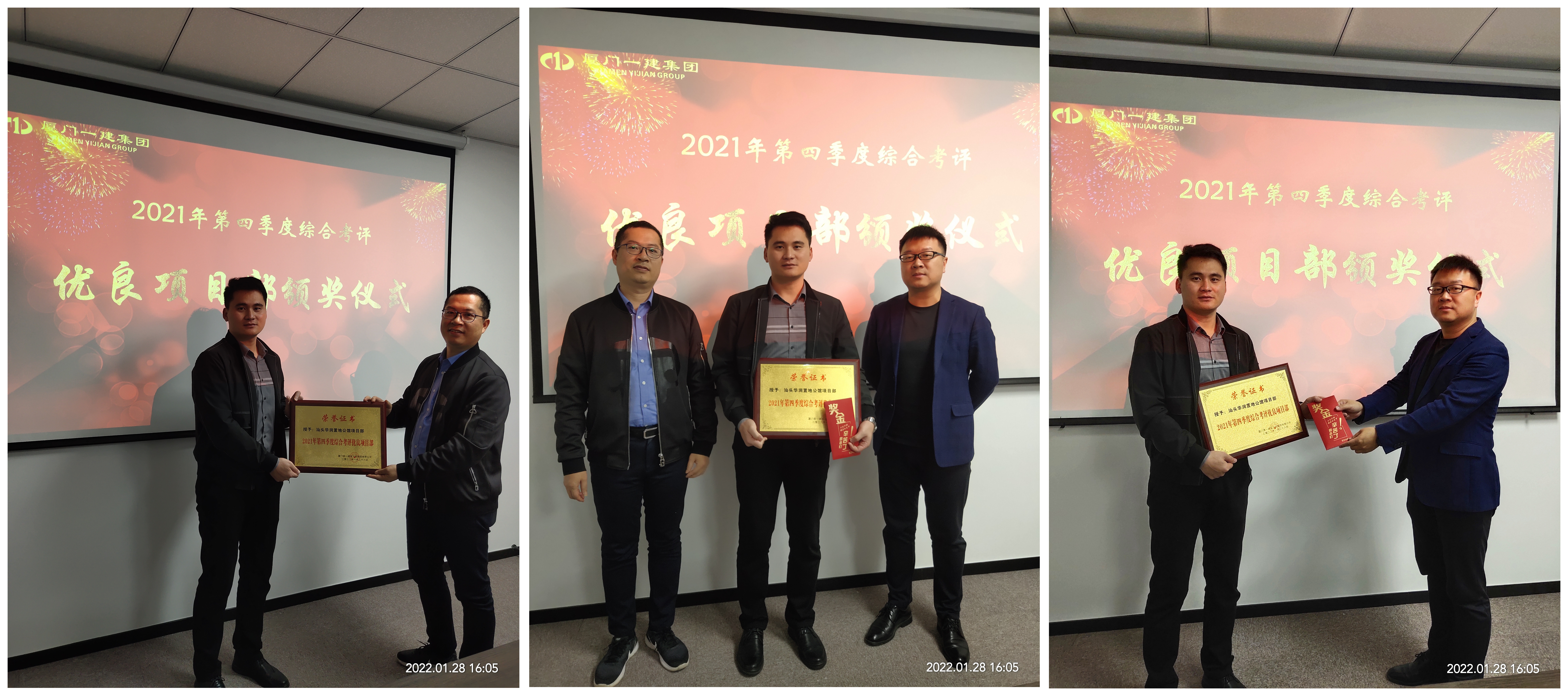 會議上也針對集團第四季度綜合考評結果進行了通報,并對此次考評中獲得優良項目部的汕頭華潤置地公館項目進行獎牌和獎金的頒發儀式。希望優良項目能繼續保持發揮優秀的管理態勢,其余項目要再接再厲,通過考評發現自身管理的不足之處,爭取在下一季度取得良好成績。